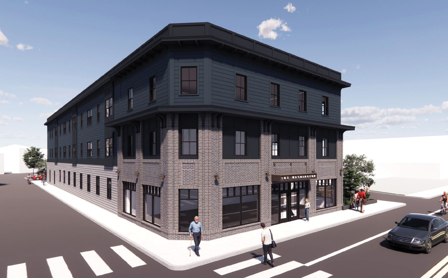 Women’s Development Corporation (WDC) will redevelop 183 Washington Street, the former Ocean State Furniture Store, into 30 new housing units with onsite supportive services for building residents. The redeveloped building will also include first-floor commercial space for local businesses.